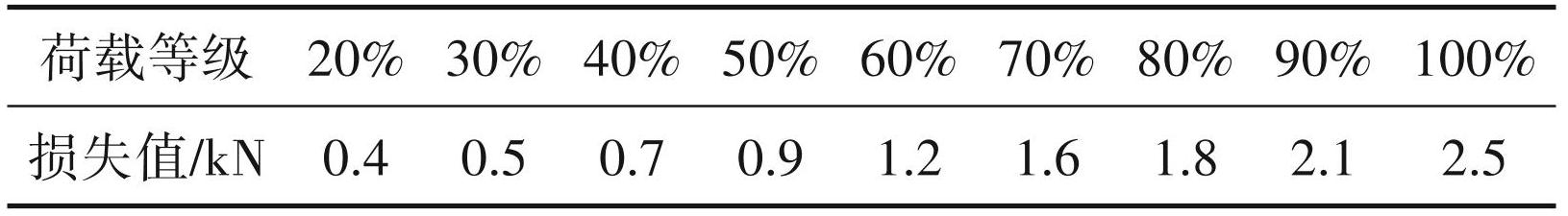 表1不同荷载等级下水平(0°)张拉预应力损失值