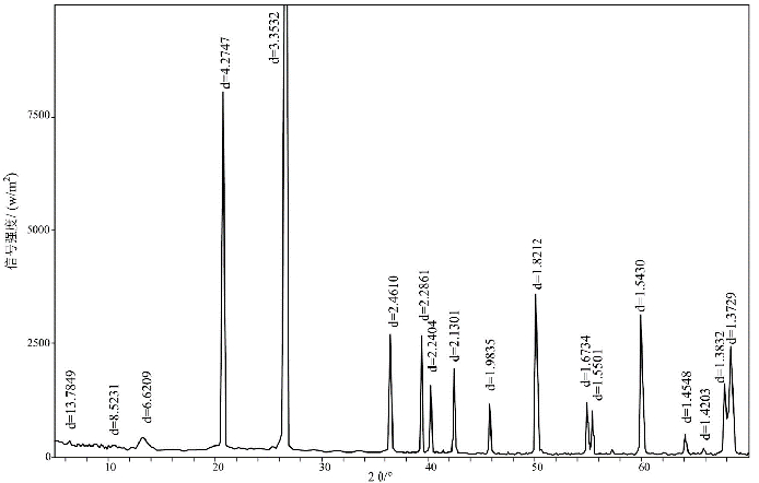 图2鹰子咀石英岩1原矿XRD图谱