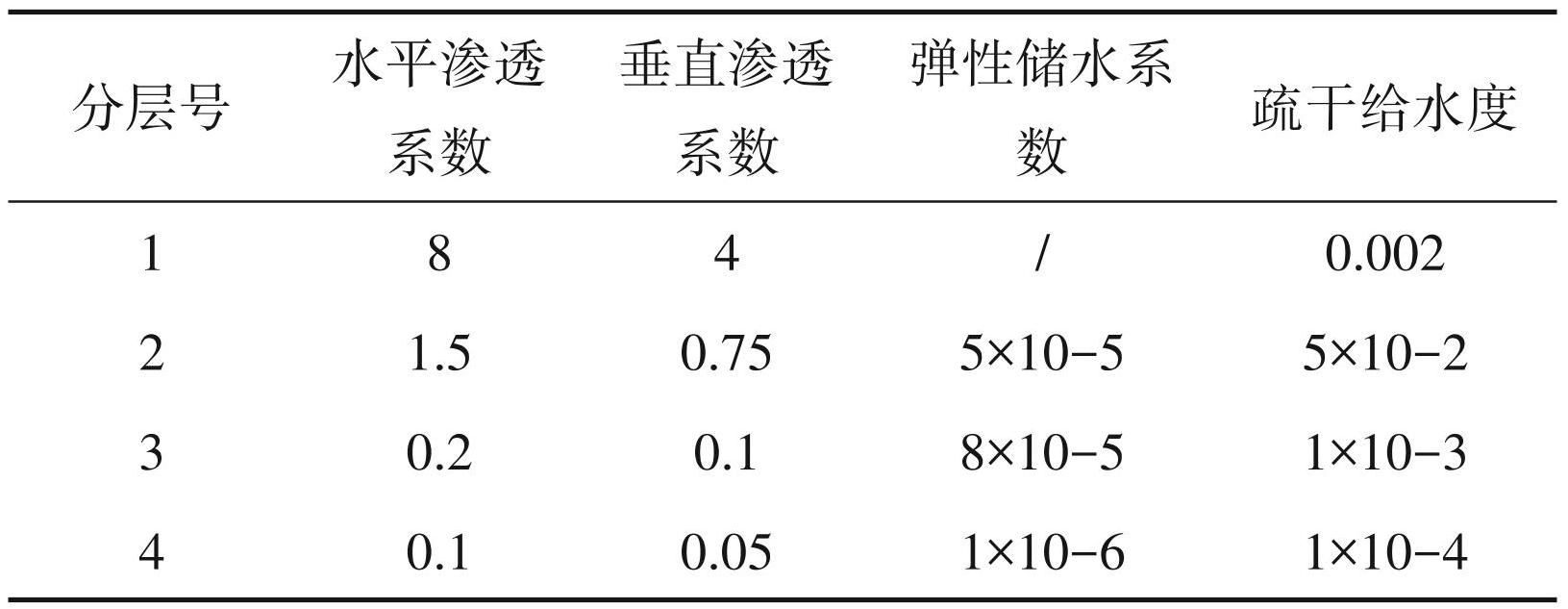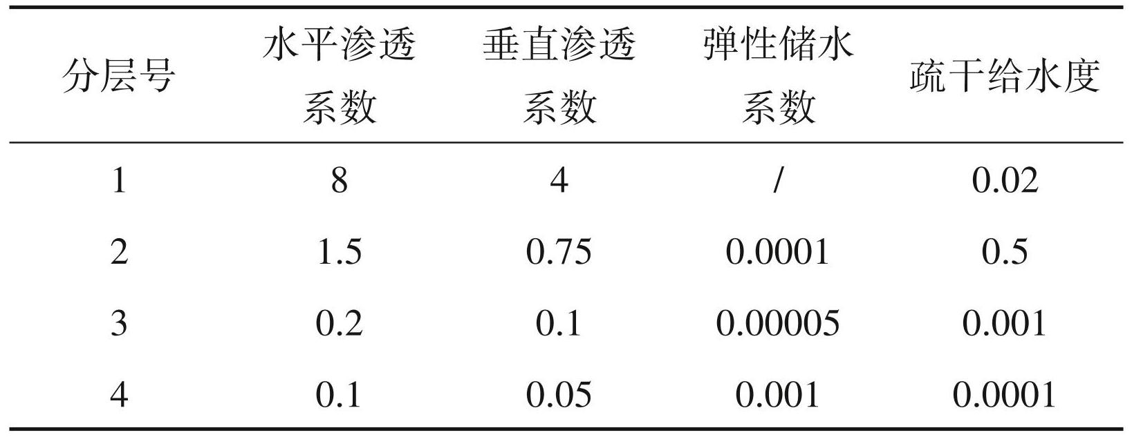 表2模型中水文地质参数初始值