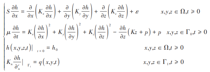 在不考虑黏度等因素时,可用下列微分方程的定解来描述研究区地下水流系统: