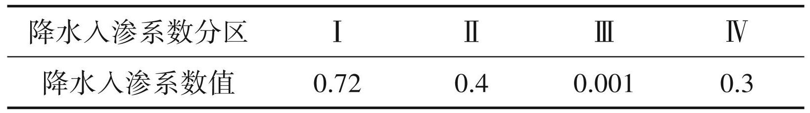 表1降水入渗系数分区及赋初值