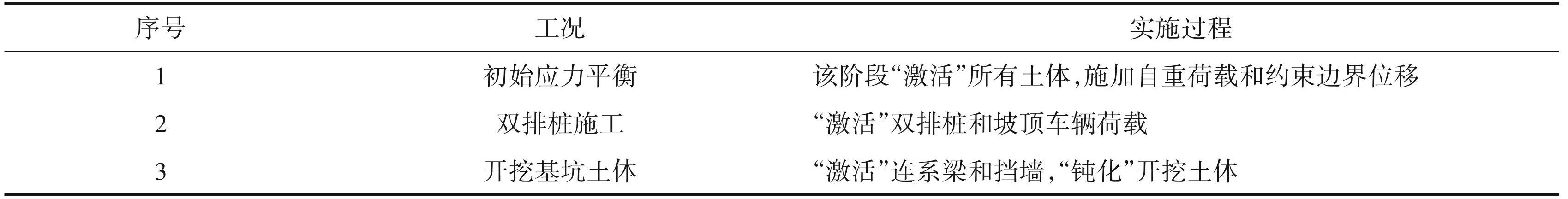 表3基坑模拟施工工况