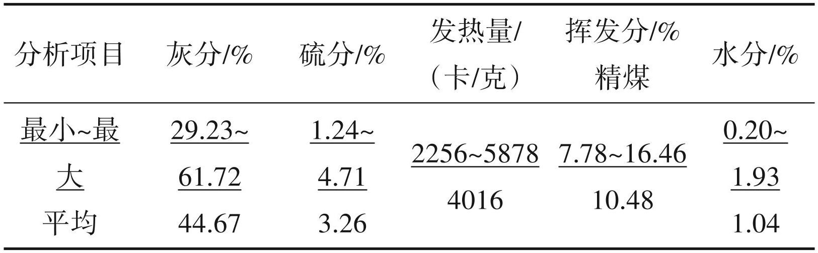 中二叠统梁山组(P2l)是一含煤地层和硫铁矿的岩组,由黄铁矿砂岩、硫铁矿层、石英砂岩、细砂岩、粉砂岩、砂质泥岩、炭质泥岩、铝质泥岩及煤层组成,厚度一般为8.53~41.43 m,平均为19.35 m。由下至上含煤二层,下部一煤极不发育,仅个别点达到可采厚度,多相变为炭质泥岩;二煤上距硫铁矿 0~6.59 m,一般为 2 m,下距黄龙组灰岩 3.48~32.53 m,平均 13.45 m。二叠系梁山组煤化学性质详见表1。