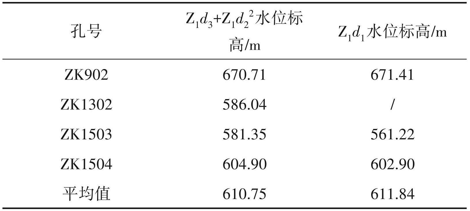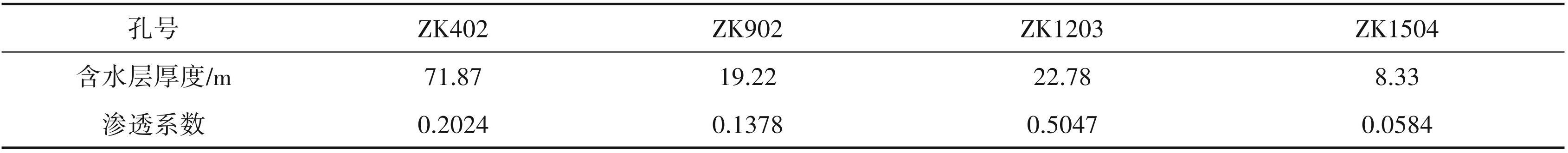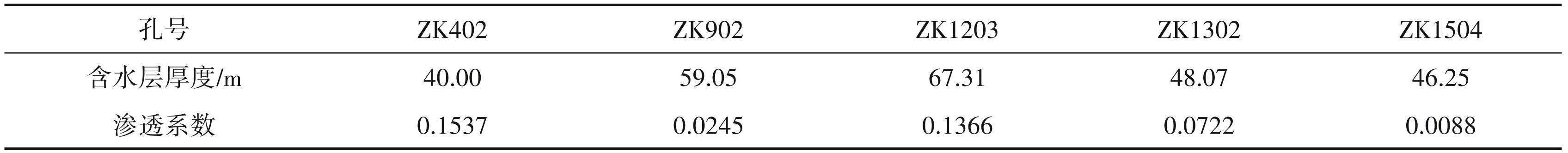 ①Z1d3+Z1d22 渗透系数(K1):根据本文勘探的 ZK402、ZK902、ZK1203、ZK1302、ZK1504 共 5 孔相应含水层最大降深的抽水、注水试验的厚度加权平均值参与计算(表3)。