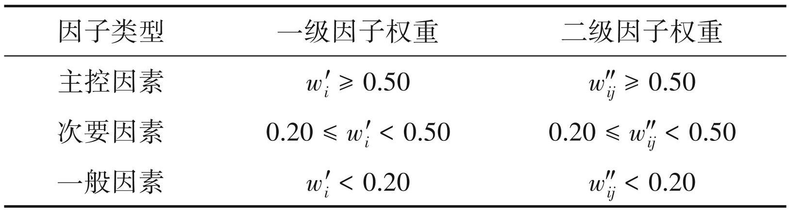 按表4选定一级因子、二级因子,一级及二级因子的权重应符合下列规定: