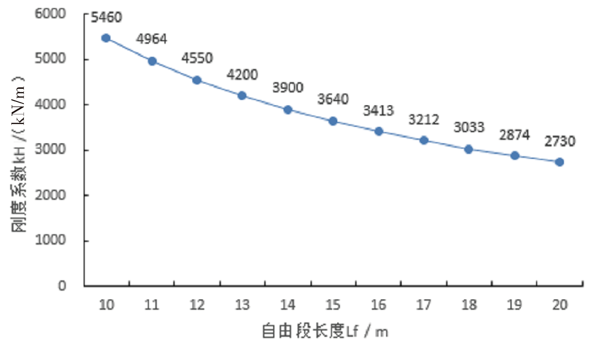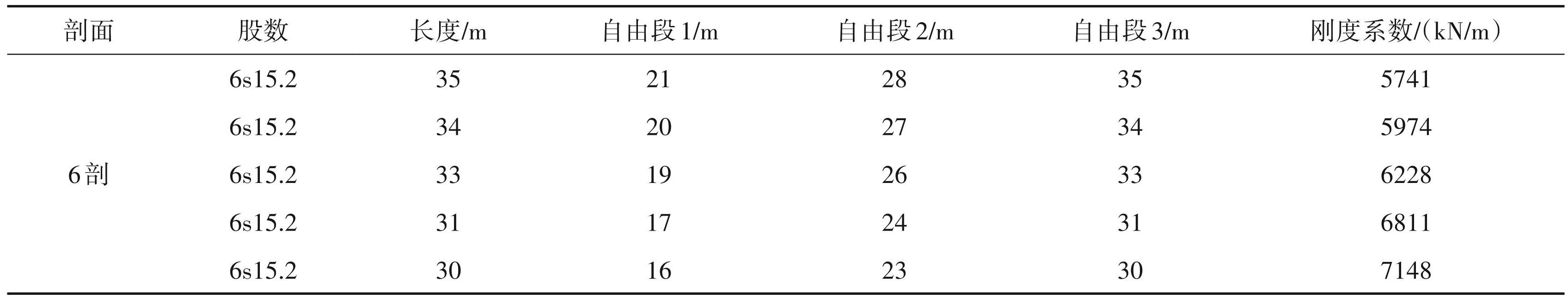 不难看出公式中杆体弹性模量、杆体截面积、自由段长度以及锚索倾角均对锚杆刚度有不同程度的影响。