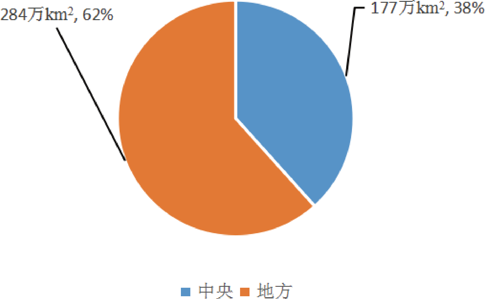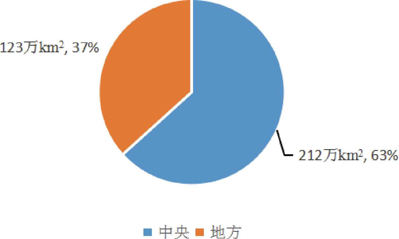 全国 1∶5 万生态地质调查工作完成面积 8.33 万 km2,占陆域国土面积的 0.9%,其中,中央投入完成7.18万km2,地方投入完成1.14万km2。