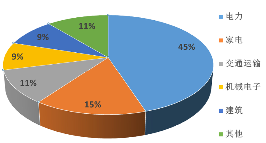 图5 中国精炼铜下游消费结构饼图