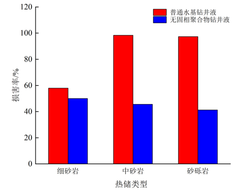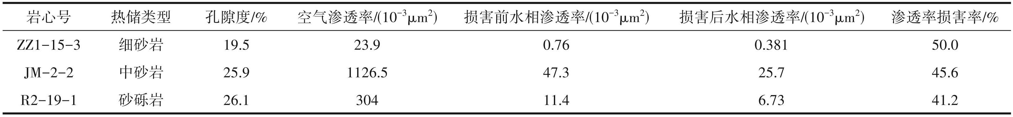 (1)研究区采用的钻井液为水基聚合物钻井液体系,其固相含量较高,固相颗粒侵入是损害热储层的主要因素,同时水敏及地层疏松微粒运移也是损害因素之一。