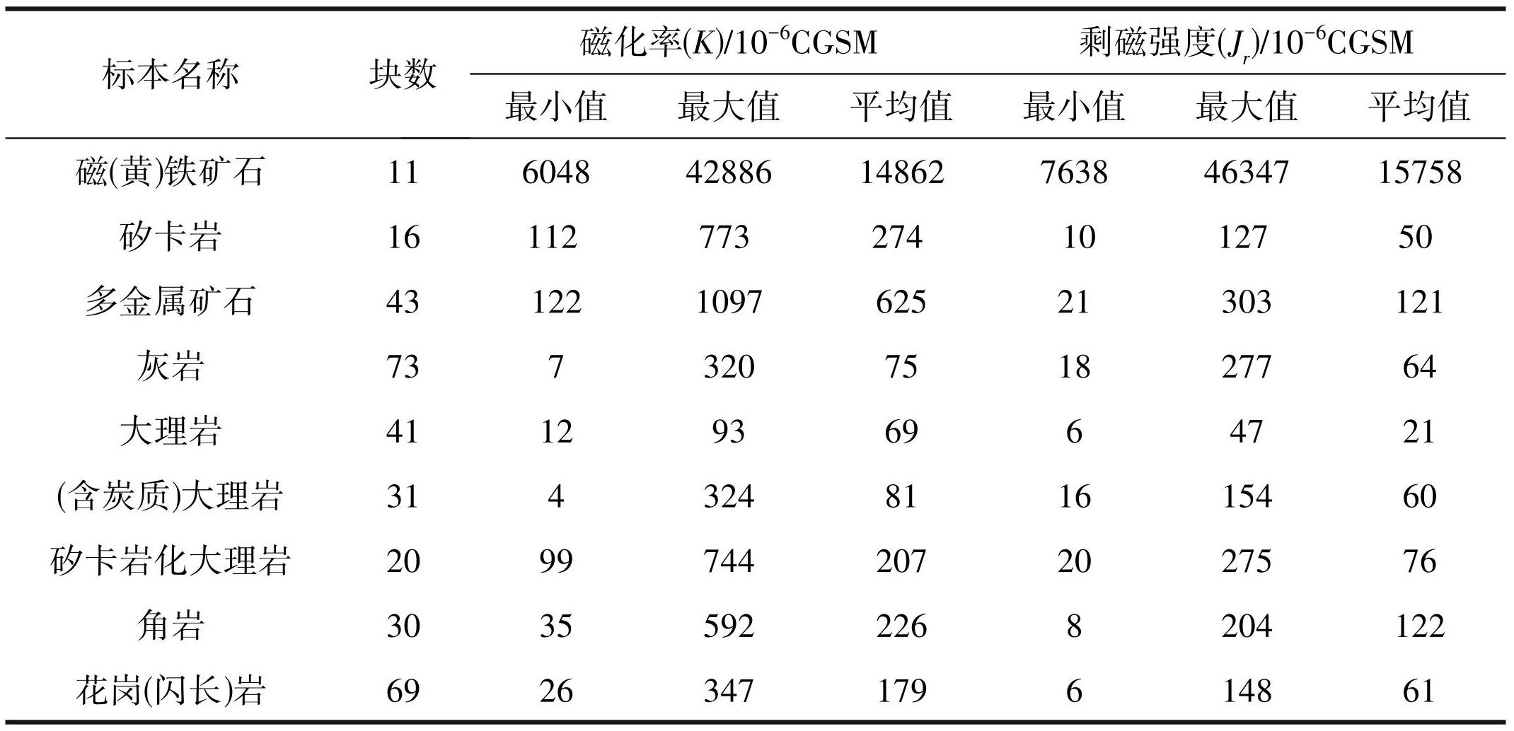 2.1 岩矿石磁性特征