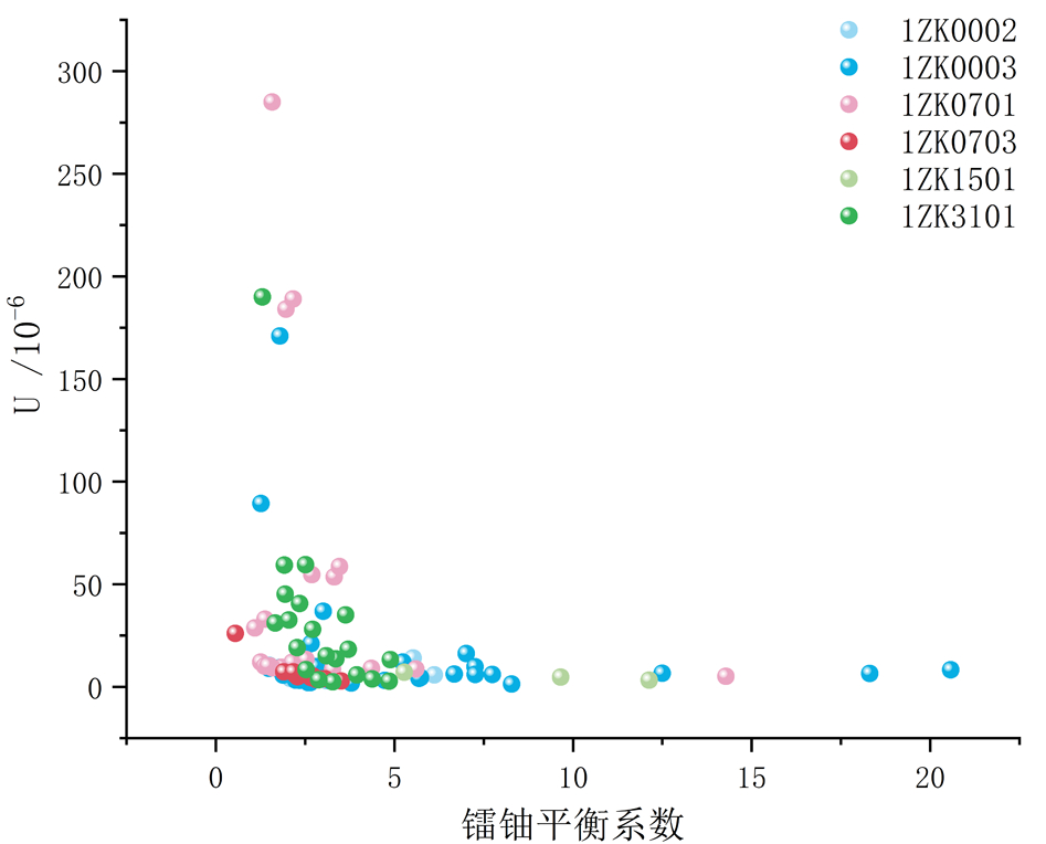 图6镭铀平衡系数-U散点图