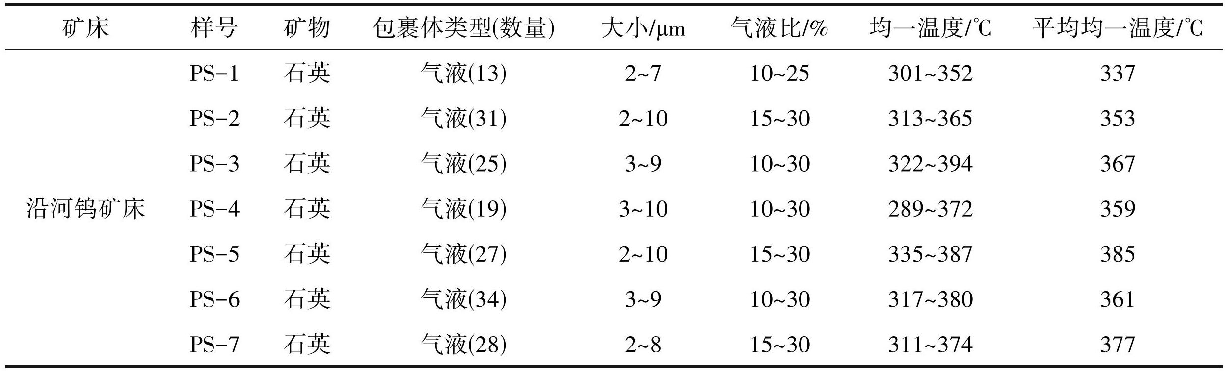 表3沿河钨矿床含钨石英脉流体包裹体测温结果