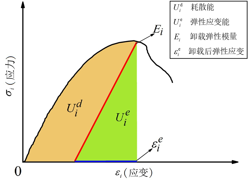 式(1)中:Ue为弹性应变能(kJ·m−3);Ud为耗散能(kJ·m−3);U0 为以热能形式所释放的能量(kJ· m−3)。