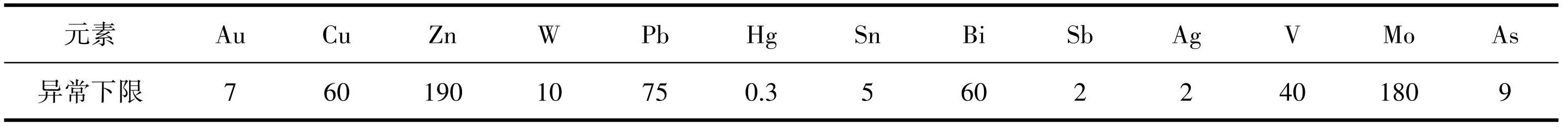 表5黄土岭土壤异常下限统计