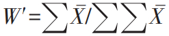 式(2)中,W'为影响因子的互权重,其中:。分别为影响因子高、中、低贡献区间或子类的贡献率平均值。