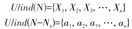 若 N 为一族等价关系,Nx∈N,若 ind(N)=ind(N-Nx),即称 Nx为 N 中不必要等价关系,否则 Nx为 N 中必要。设不同的等价关系(评价因子)N1,···,Nx∈N,论域 U关于 ind(N)的等价类以及删除某一因子后的等价类如下: