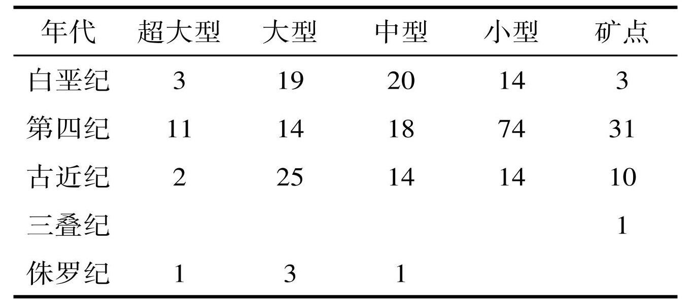 图2中国芒硝矿成矿时代统计图(截止2024年底)