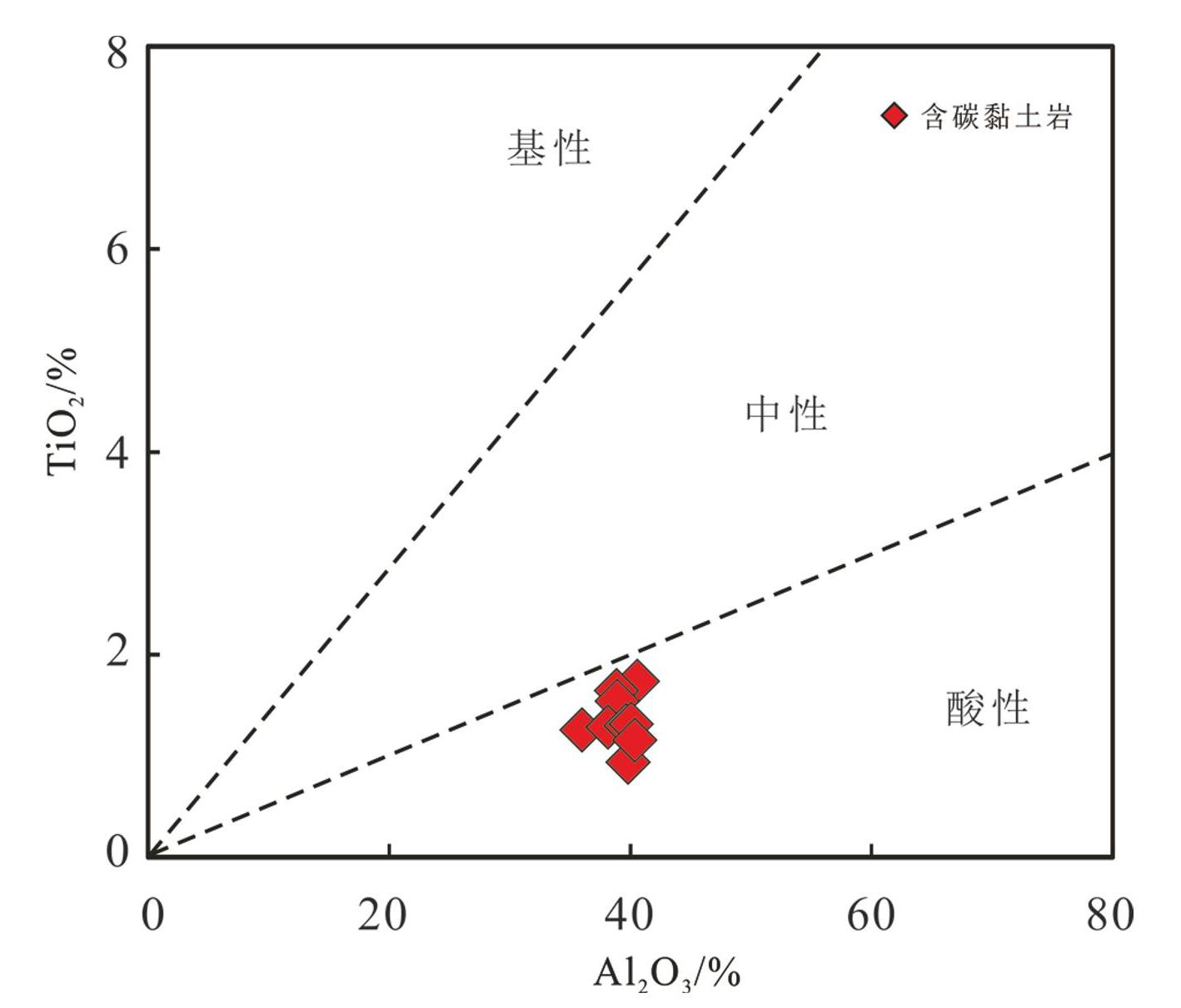 图9白杨坪地区富锂黏土岩Al2O3-TiO2图解