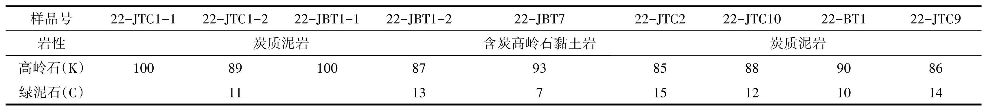 然后存在重要的复杂性和例外情况:样品 22-JTC10和22-BT1中绿泥石占比较高(分别为12%及 14%)(表3),但 Li2O 含量较低,这表明并非所有绿泥石都同等富锂,可能受绿泥石具体种类(如是否为锂绿泥石)、成岩后生改造或微观非均质性影响。而样品 22-JTC-1 中黏土矿物为高岭石,无绿泥石,仍检测到 Li2O 含量 0.14%,这明确证实高岭石同样是锂的有效载体之一。前人研究也支持这一观点:宋云华等(1987)研究显示,以高岭石为主的黏土岩中 Li2O 含量为 0.036%~0.076%,而朱正杰等(2017) 在对四川芦塘煤矿的研究中,也显示出Li与高岭石具有一定的相关性,以上特征均指示本研究区内富锂黏土岩中Li可能也有部分赋存在高岭石中。