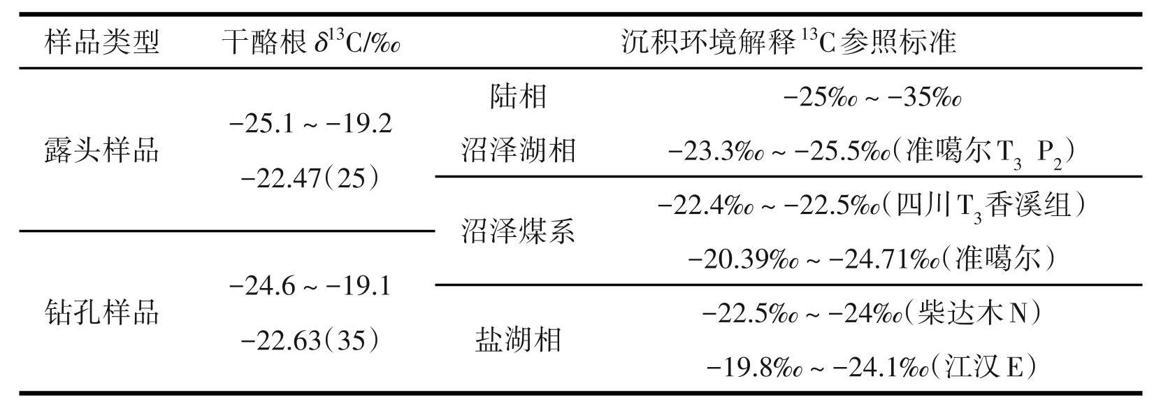 表6六盘山北段马东山组一段泥页岩干酪根碳同位素特征